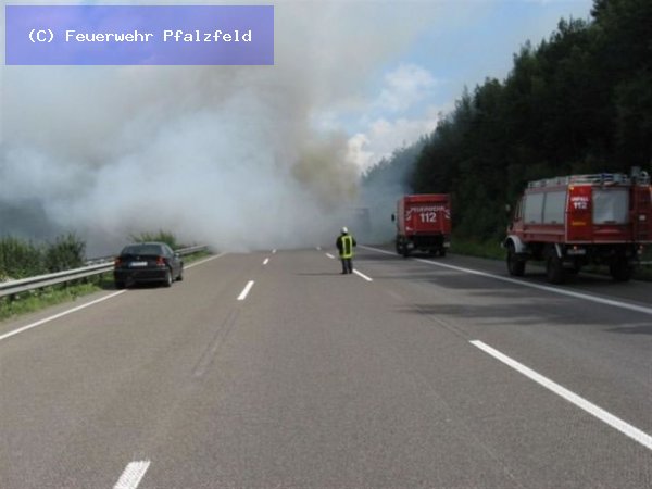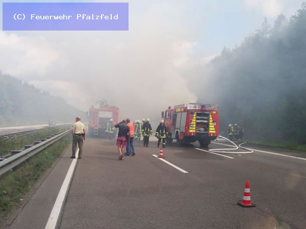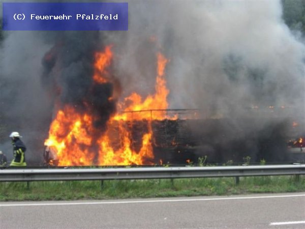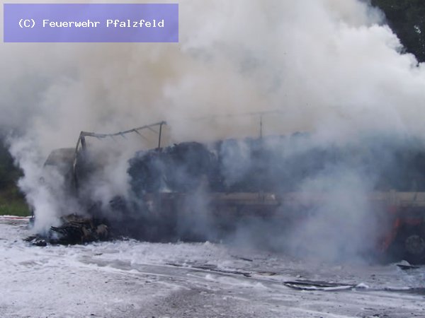 Vollbrand eines mit Sitzmöbeln beladenen LKW.
