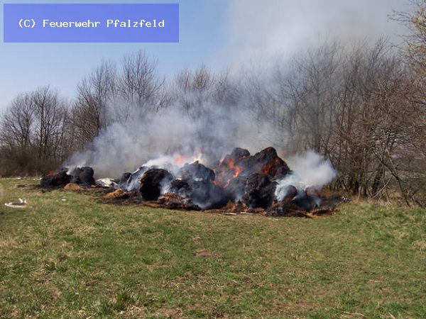 Am 13.04.09 wurde die FFW Pfalzfeld nach Dörth an den Reitstall gerufen. Hier brannten eine Menge Heuballen. Der Brand konnte innerhalb kurzer Zeit unter Kontrolle gebracht werden.
