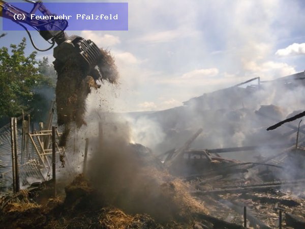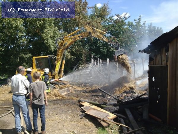 Am 28.07.09 wurde die FFW Pfalzfeld zur Unterstützung nach Damscheid zum Aussiedlerhof Hardthöhe gerufen. Hier brannte eine Scheune. Der Einsatz dauerte mehrere Stunden und es endstand hoher Sachschaden.