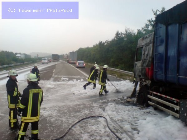 Am 10.08.09 wurde die FFW Pfalzfeld und FFW Emmelshausen auf die BAB 61 Fahrtrichtung Süden gerufen. Meldung: LKW Brand.