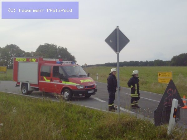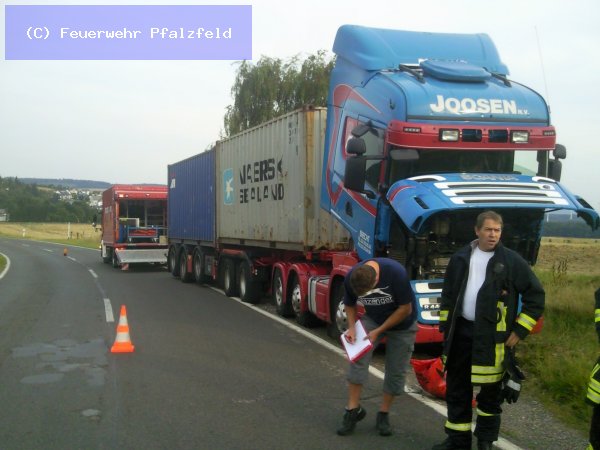 Die Feuerwehr Pfalzfeld wurde am Nachmittag zum Kreuzungsbereich Laudert/Maisborn gerufen. An einem LKW war der Dieselfilter geplatzt.