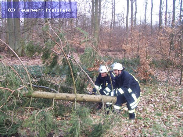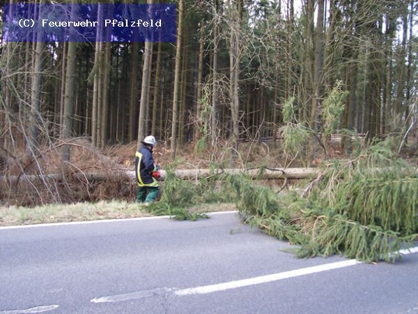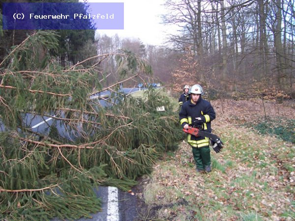 Am 12.03.08 wurde die FFW Pfalzfeld auf K100 Richtung Biebernheim gerufen. Hier war ein Baum auf die Fahrbahn gefallen.