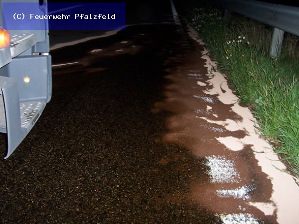 Am 29.07.08 wurde die FFW Pfalzfeld auf die BAB 61, Fahrtrichtung Süden gerufen. Hier lief aus dem Tank eines LKW´s Kraftstoff auf und musste aufgenommen werden.