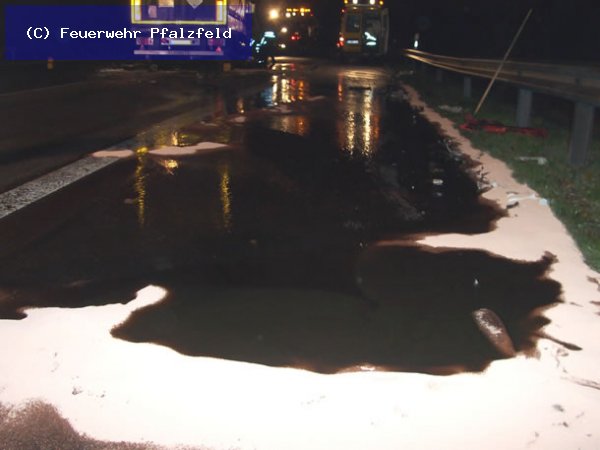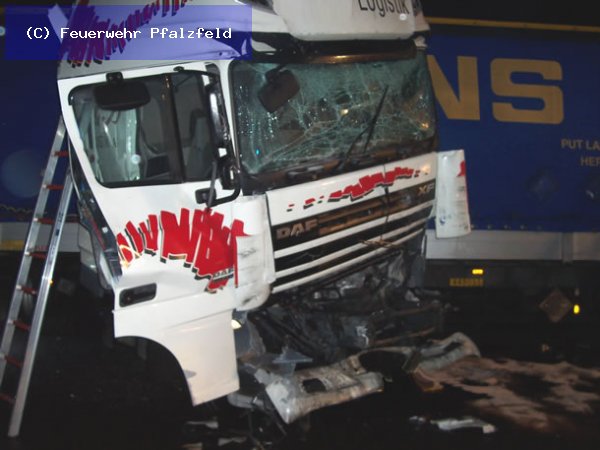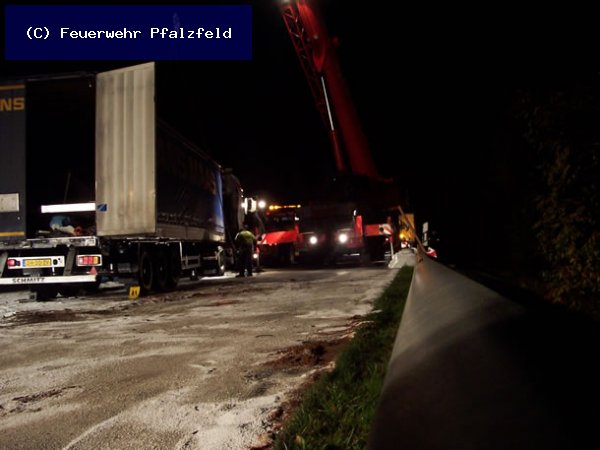 Am 31.10.08 wurde die FFW Pfalzfeld auf die BAB 61, Fahrtrichtung Süden gerufen. Hier ereignete sich ein schwerer LKW Unfall. Der Fahrer musste aus dem Führerhaus befreit werden.