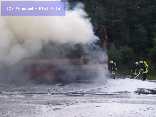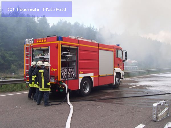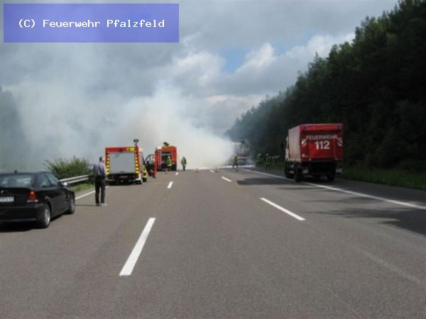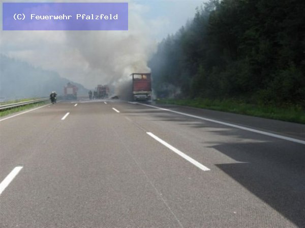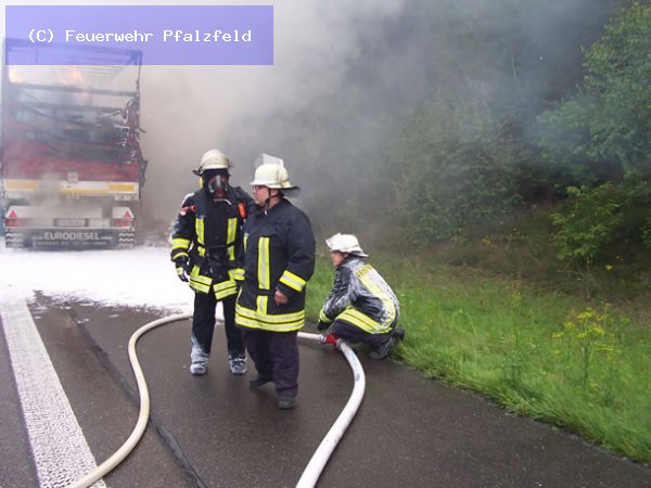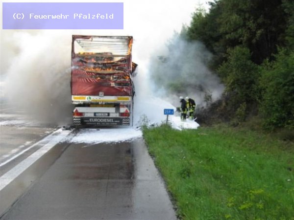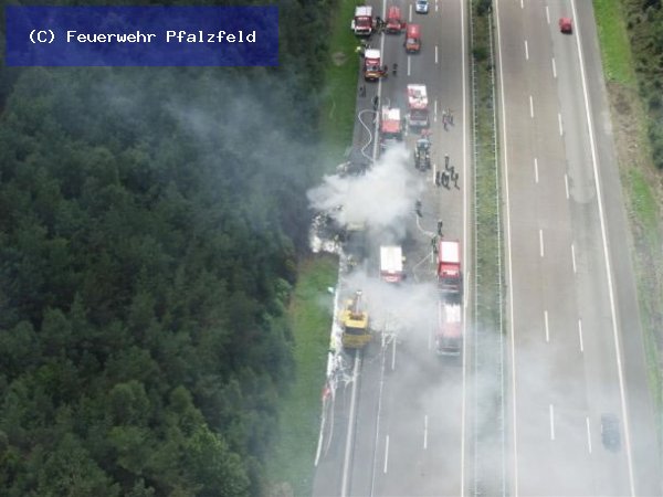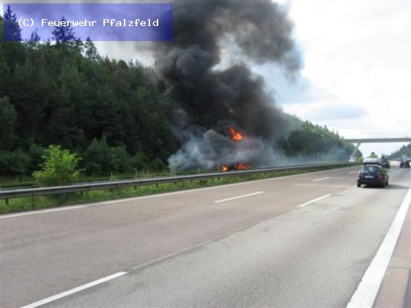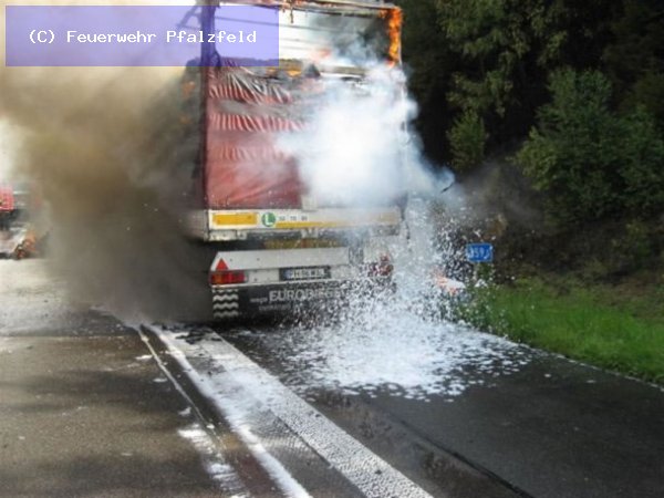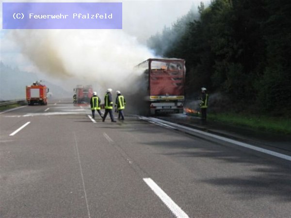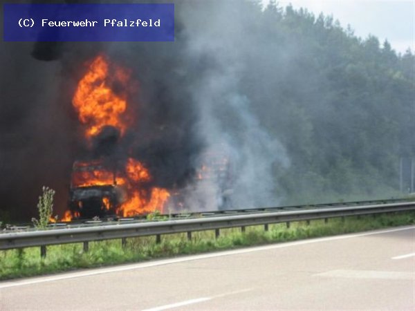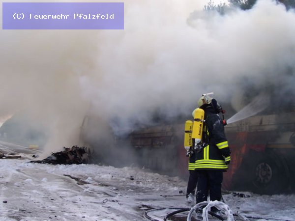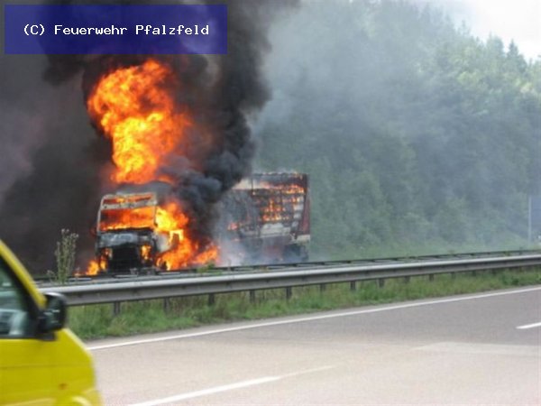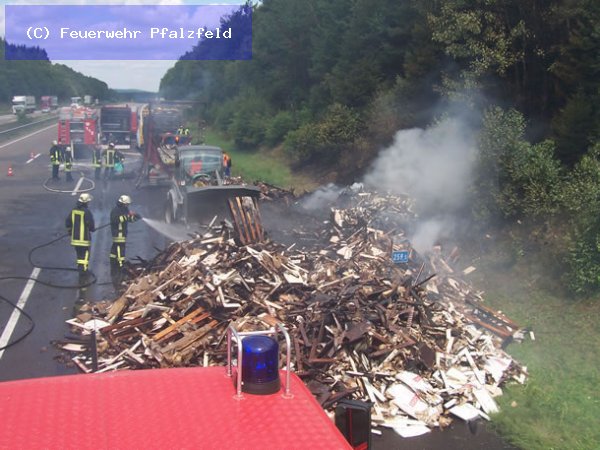Vollbrand eines mit Sitzmöbeln beladenen LKW.