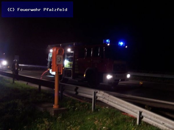 Kurz vor der AS Laudert wurde er gegen 04.05 h von einem PKW überholt, der unmittelbar neben dem Sattelzug ins Schleudern kam, links mit der Mittelschutzplanke kollidierte, von dort nach rechts abgewiesen wurde und in die Seitenschutzplanke prallte.