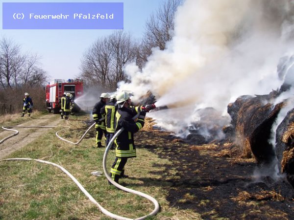 Am 13.04.09 wurde die FFW Pfalzfeld nach Dörth an den Reitstall gerufen. Hier brannten eine Menge Heuballen. Der Brand konnte innerhalb kurzer Zeit unter Kontrolle gebracht werden.