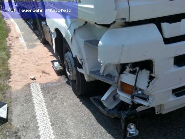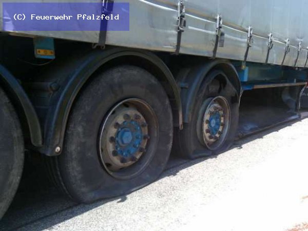 Am 07.05.09 wurde die FFW Pfalzfeld alarmiert. Meldung: Verkehrsunfall mit auslaufenden Betriebsstoffen an einem LKW. Einsatzort BAB 61, Fahrtrichtung Süden vor der Anschlussstelle Laudert.