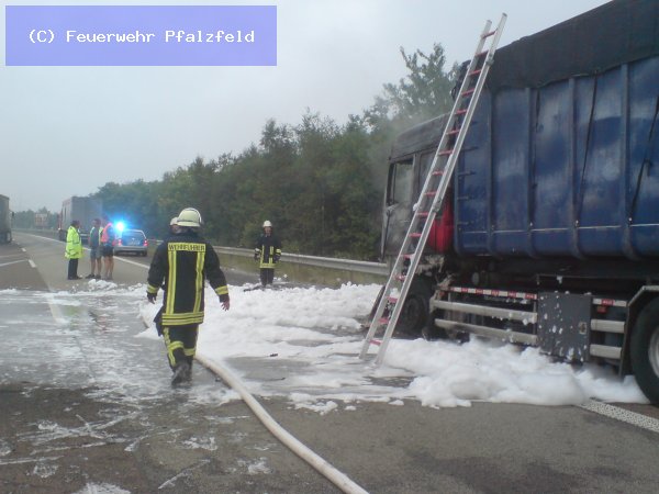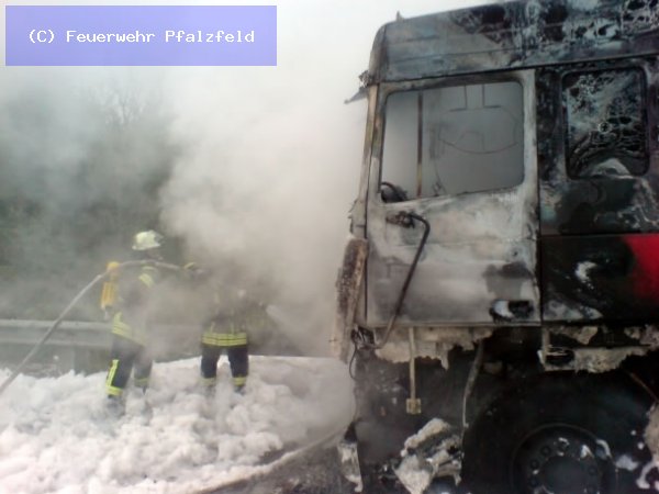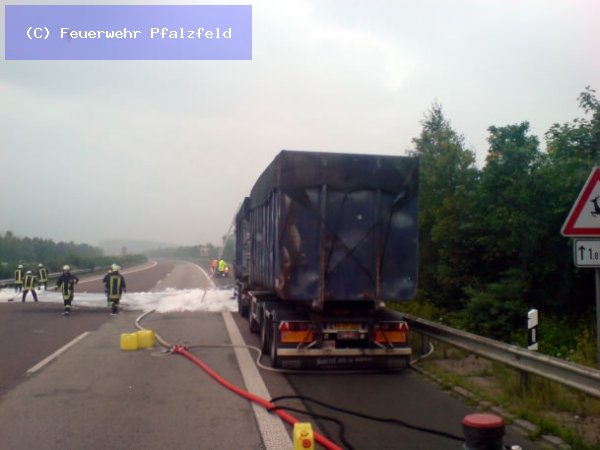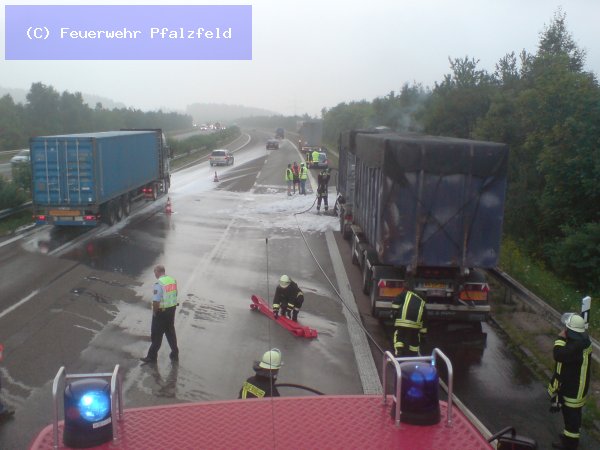 Am 10.08.09 wurde die FFW Pfalzfeld und FFW Emmelshausen auf die BAB 61 Fahrtrichtung Süden gerufen. Meldung: LKW Brand.