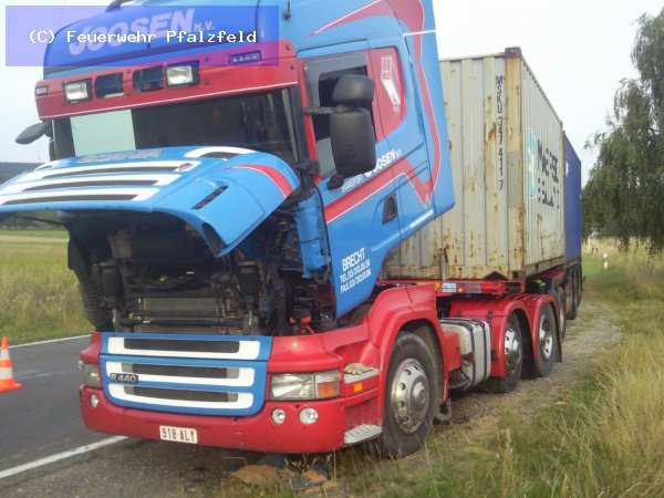 Die Feuerwehr Pfalzfeld wurde am Nachmittag zum Kreuzungsbereich Laudert/Maisborn gerufen. An einem LKW war der Dieselfilter geplatzt.