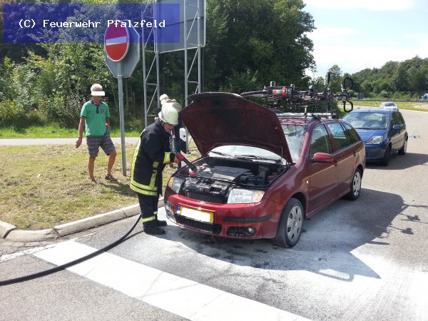 Brennender Motorraum, abgelöscht mit Schnellangriff.