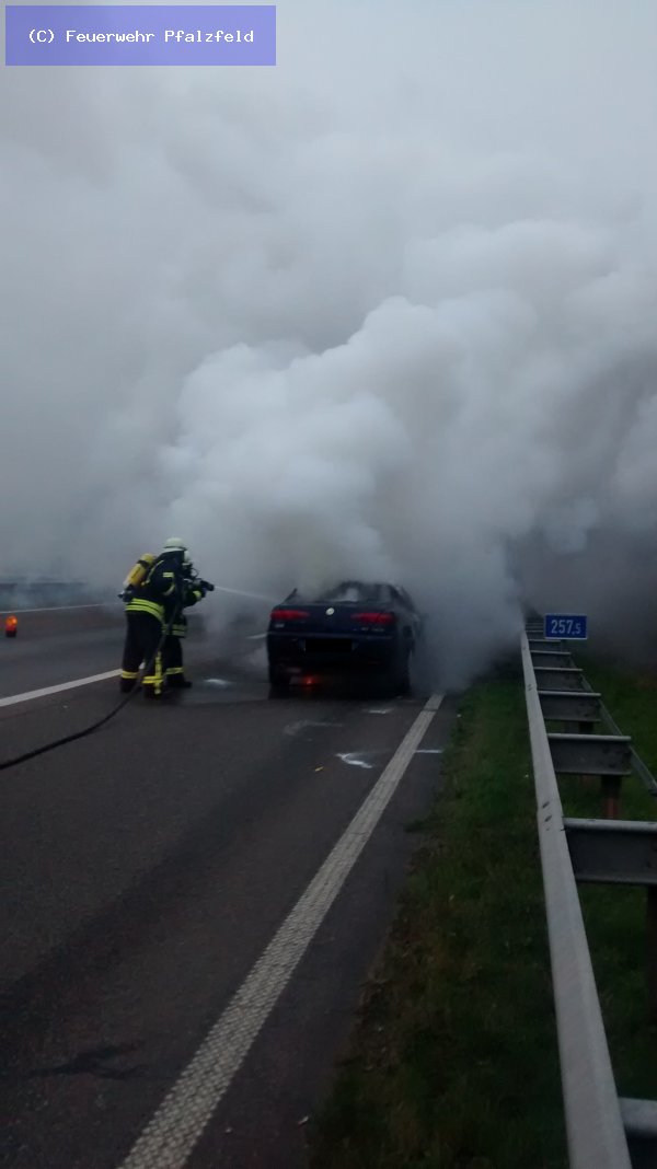 Vollbrand eines PKW auf der A61 Fahrtrichtung Norden zwischen den Anschlußstellen Laudert und Pfalzfeld.