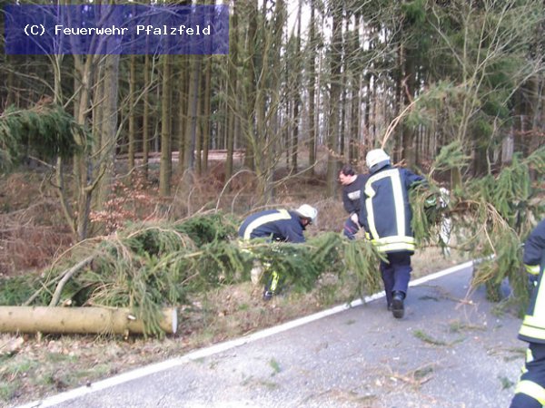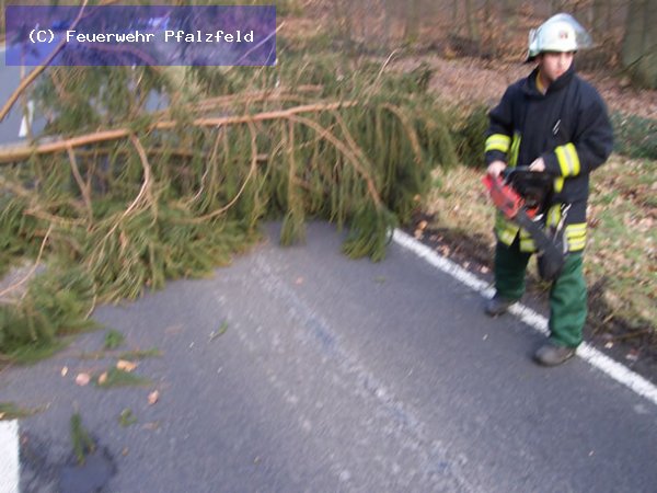 Am 12.03.08 wurde die FFW Pfalzfeld auf K100 Richtung Biebernheim gerufen. Hier war ein Baum auf die Fahrbahn gefallen.