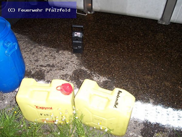 Am 29.07.08 wurde die FFW Pfalzfeld auf die BAB 61, Fahrtrichtung Süden gerufen. Hier lief aus dem Tank eines LKW´s Kraftstoff auf und musste aufgenommen werden.