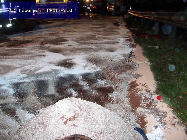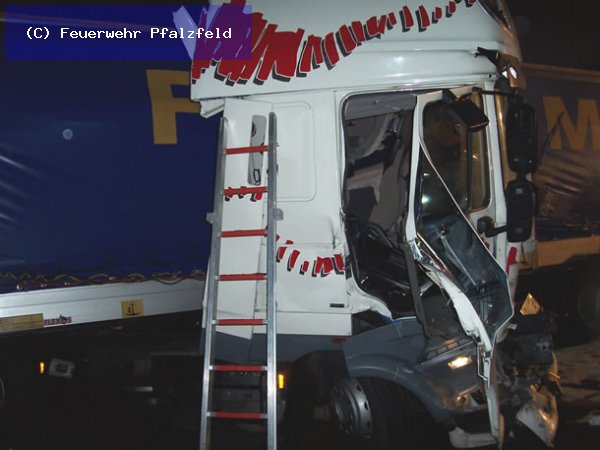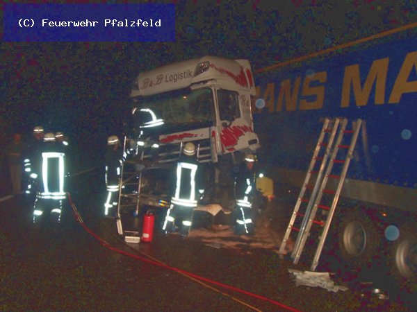 Am 31.10.08 wurde die FFW Pfalzfeld auf die BAB 61, Fahrtrichtung Süden gerufen. Hier ereignete sich ein schwerer LKW Unfall. Der Fahrer musste aus dem Führerhaus befreit werden.